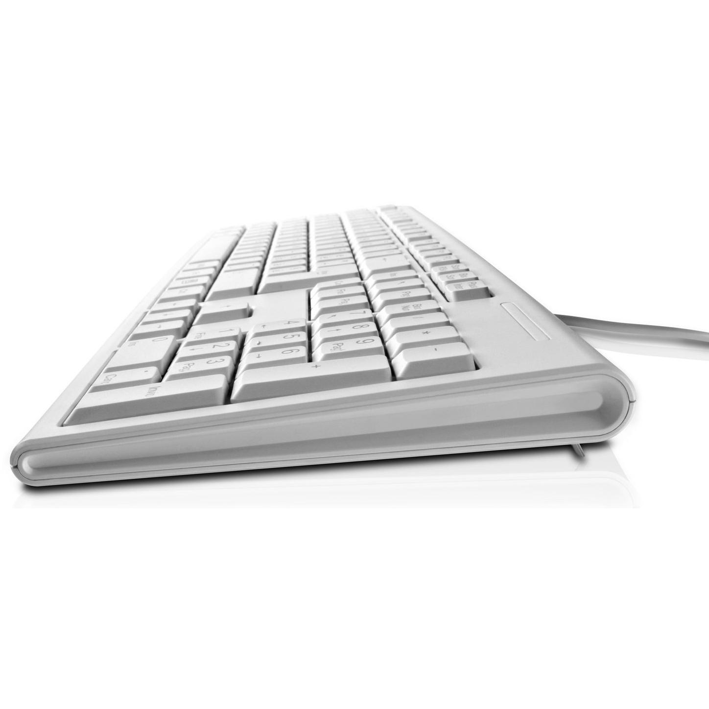 Tastiera USB bianca a layout QWERTY italiano, con interruttori meccanici a chiave per una digitazione precisa e un tastierino numerico integrato. Il c ...