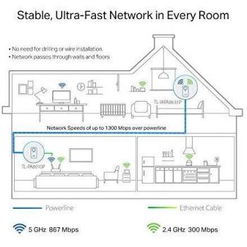 TL-WPA8631P KIT Powerline WiFi, AV1300 Mbps su Powerline, AC1200 Mbps su WiFi Dual Band, 3 Porte Gigabit, Plug and Play, HomePlug AV2