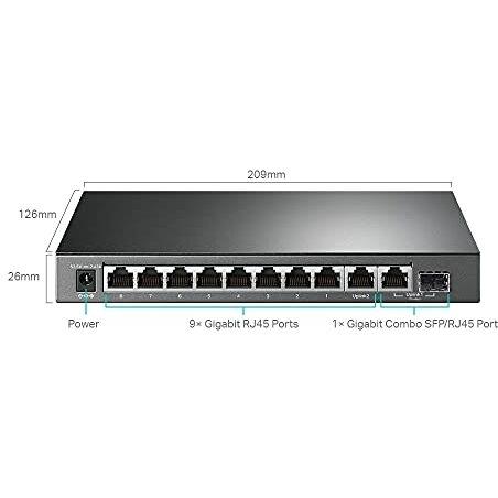 Tp-link switch 10 porte gestito l2 8 x 10/100/1000 (poe+) + 1 x 10/100/1000 + 1 x combo gigabit sfp/rj-45 poe+ (123 w)
