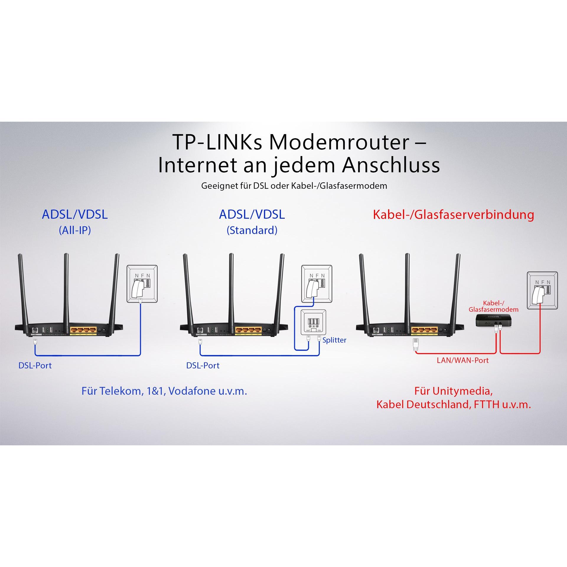 Router TP‑Link AC1750 Modem ADSL2+ (Versione Tedesca)