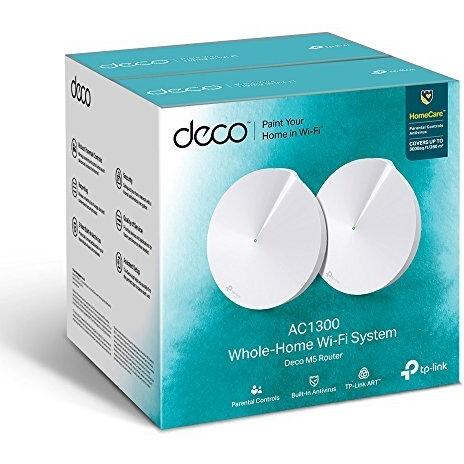 TP-Link Deco M5 Mesh Wi-Fi System, 2-Unit Pack with up to 350 sq ft of coverage per device, AC1300 Dual Band Gigabit Wireless Mesh Router, Works with Alexa