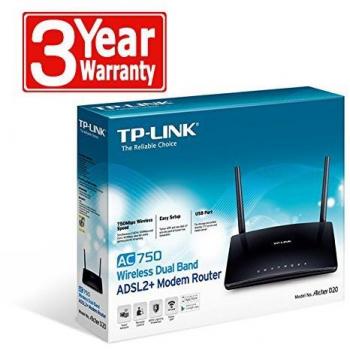 TP-Link Modem Router Wireless Dual Band Gigabit Archer D20 ADSL2+ 750 Mbps 4 Porte Ethernet LAN / 1 Porta USB 2.0