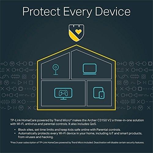 Il router TP‑Link Archer C3150 offre Wi‑Fi 5 con velocità fino a 3,15 Gb grazie al processore dual‑core da 1,4 GHz e MU‑MIMO. Quattro ant ...