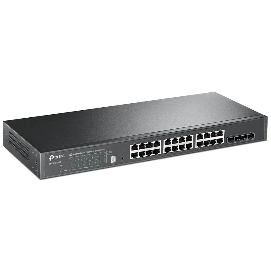 TP-Link T1700G-28TQ Switch di rete aziendale intelligente Jetstream, 24 porte Gigabit, 4 porte SFP+ 10GE stackabili, routing statico, VLAN per tag e voce