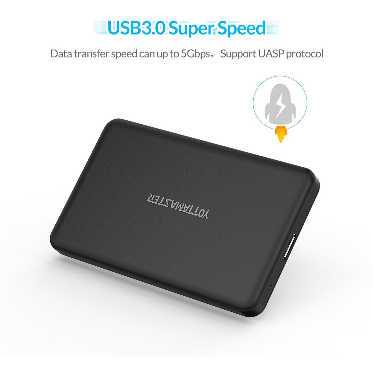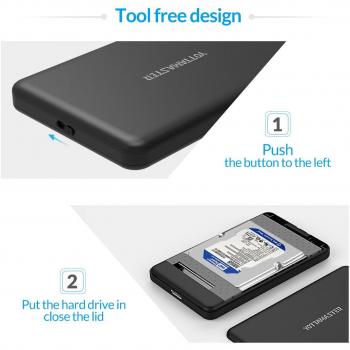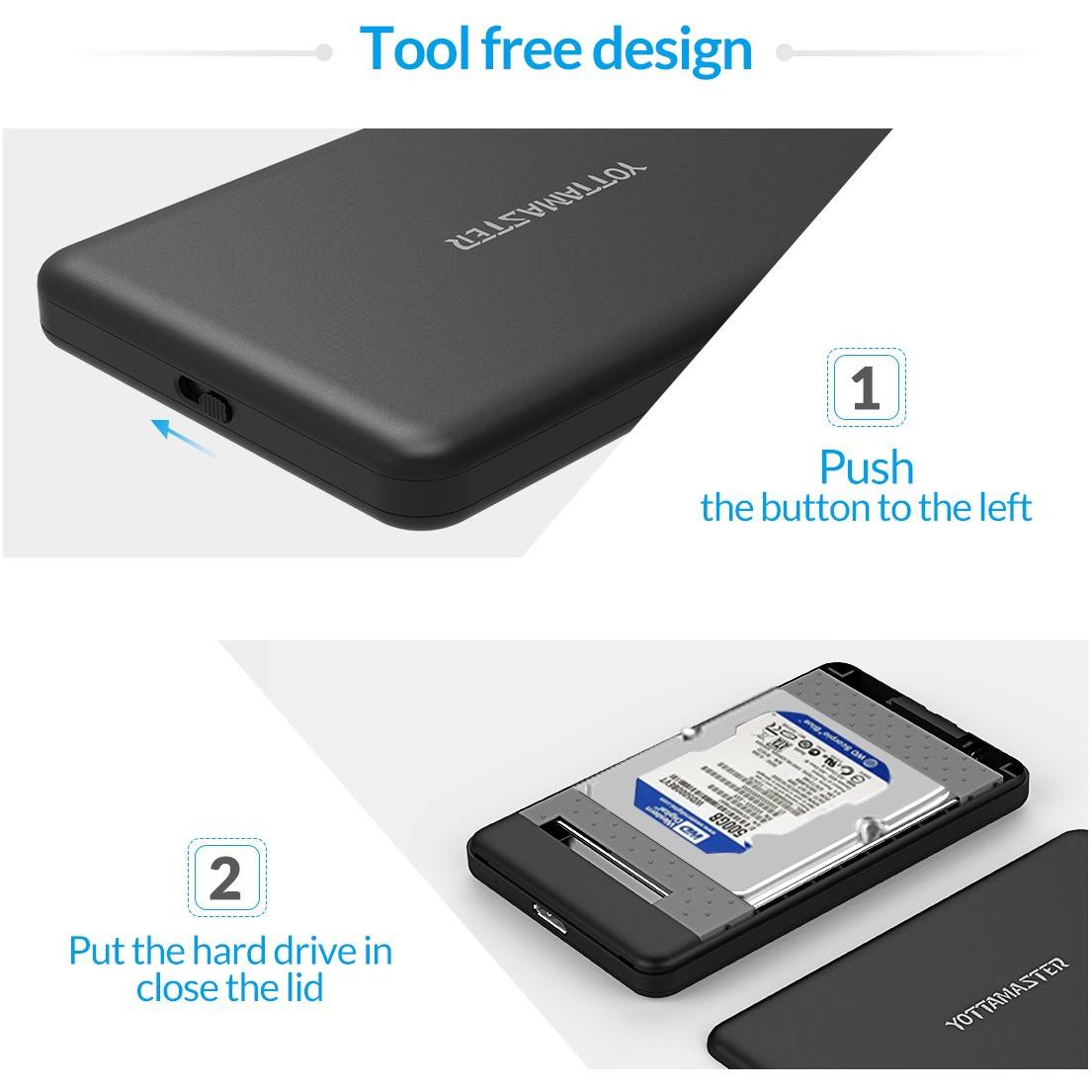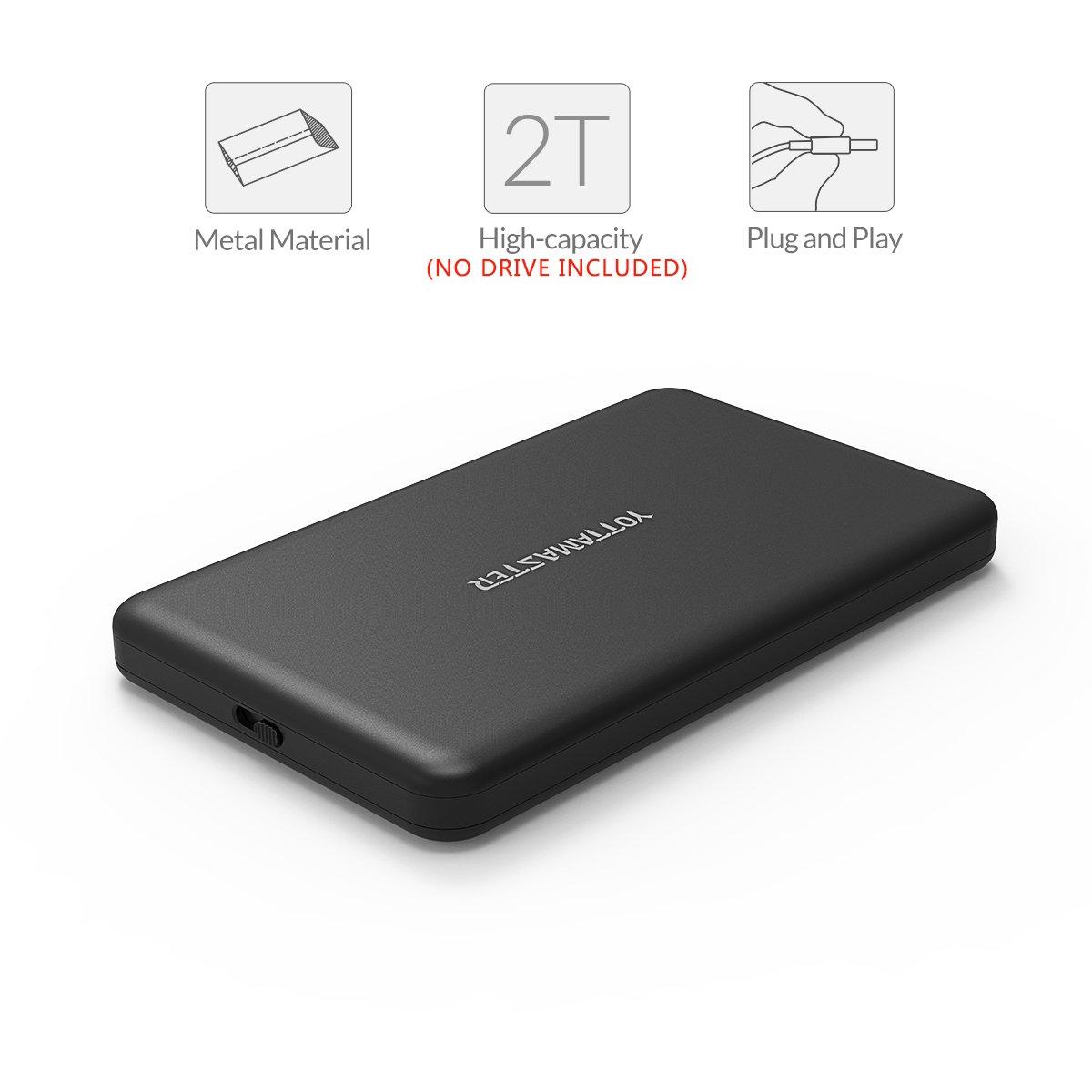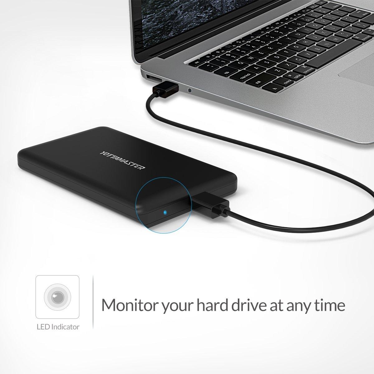Yottamaster Tool Free USB3.0 Micro B to SATA III 2.5 Enclosure for External Hard Disk Drive for SATA/SSD Hard Drive [Support 2TB and UASP] - Black and Silver (A5-U3)