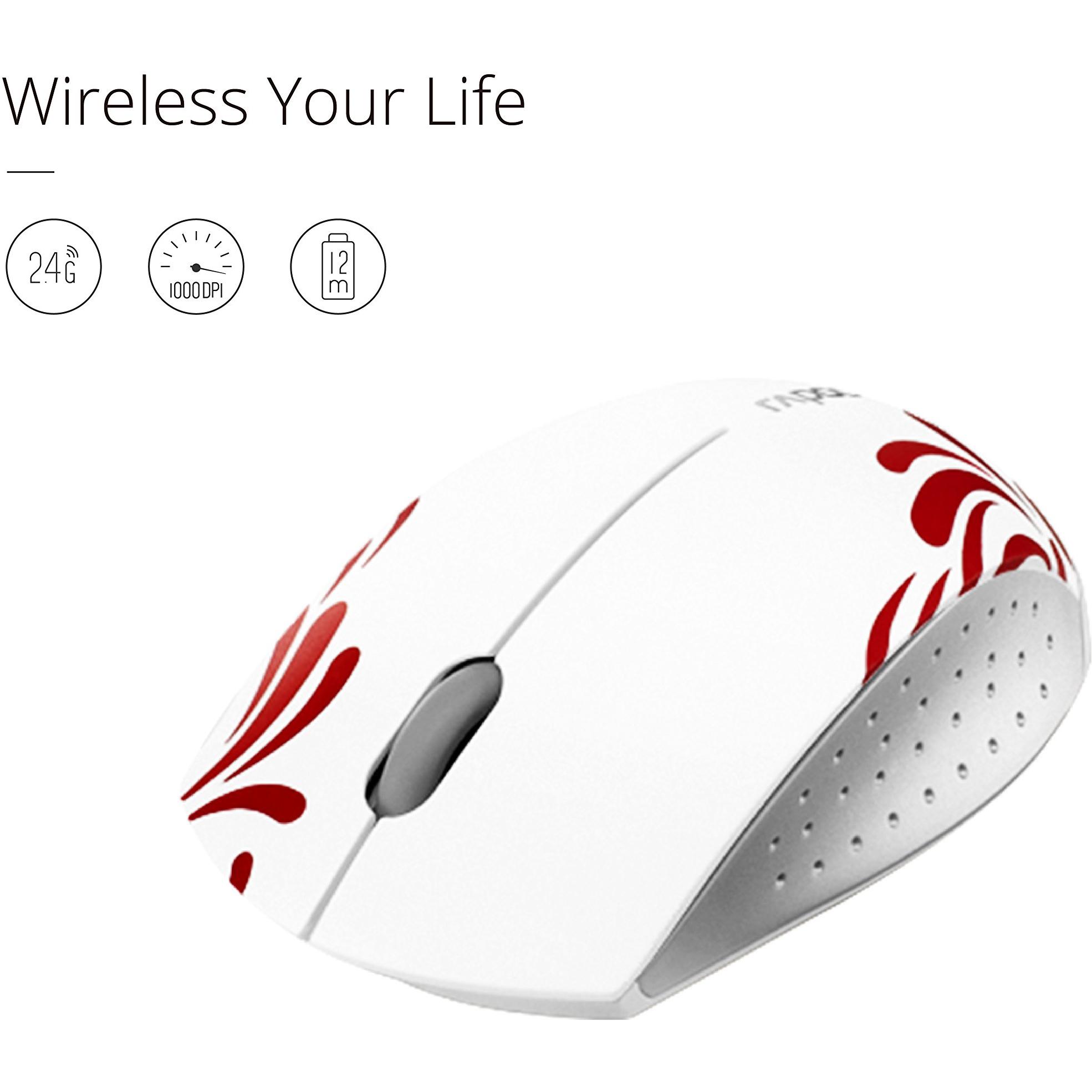 17308 3300+ Mini Mouse Wireless, 3 Tasti, 1000 dpi, 2.4 Ghz, /Rosso, Bianco