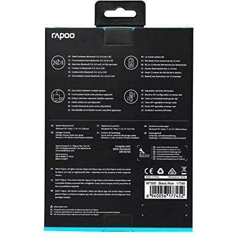 Rapoo - 17745 - 6940056177452 - B0773RVD3F - Nero - Mano destra - Wireless a RF + Bluetooth - 1600 DPI - Ottico - Tasti premuti - Rotella - Universale