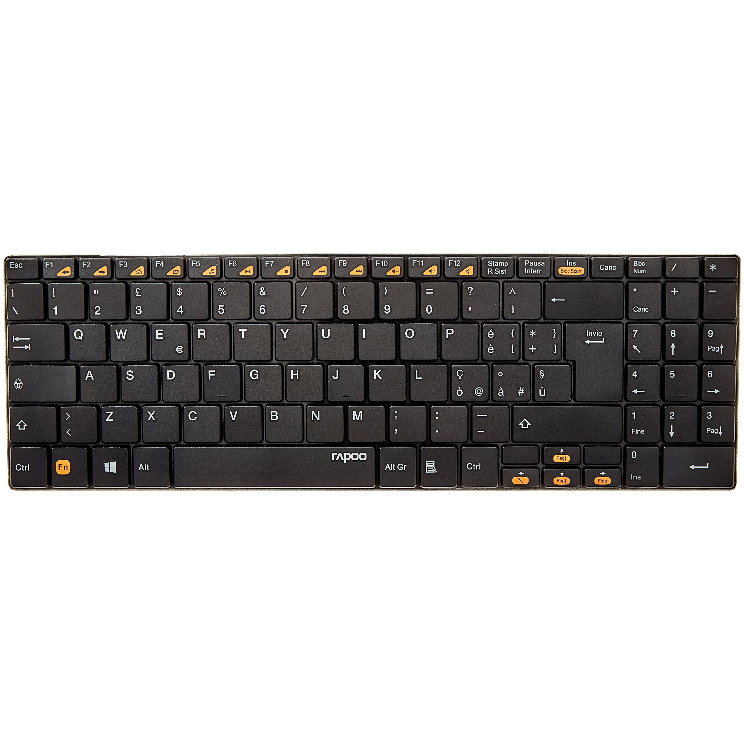 Rapoo 91183 E9070 Tastiera Multimediale Wireless Ultrasottile Inox