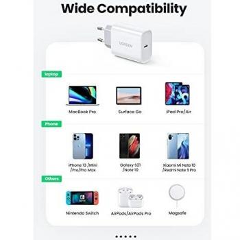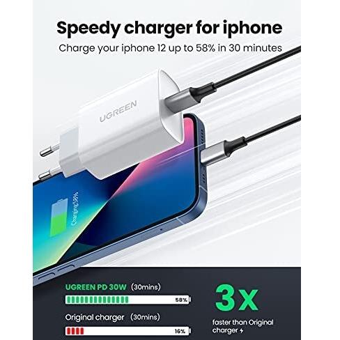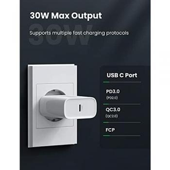 UGREEN Caricabatterie USB C da 30W con Power Delivery 3.0 e Quick Charge 3.0