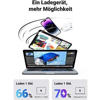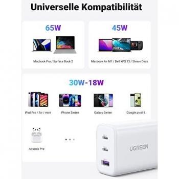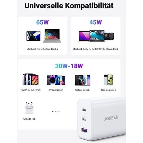 Caricatore USB-C 65W Caricatore USB C (alimentatore) a 3 porte PD - nuovo