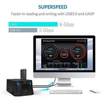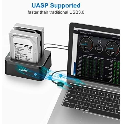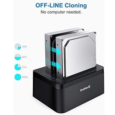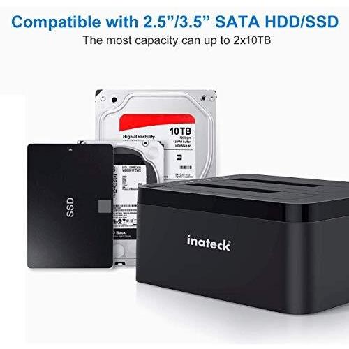Inateck Docking Station USB 3.0 a SATA Dual-Bay per Hard Drive con funzione clonazione offline per HDD SSD 2.5"/3.5" SATA (SATA I/II/III), compatibile con 2 x 10TB e UASP, Nero (SA02002)