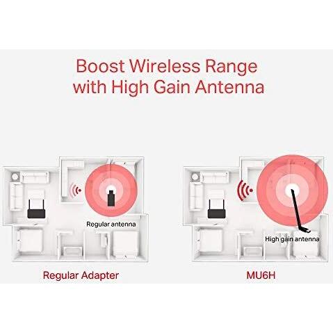 Mercusys (MU6H) Adattatore USB Dual Band Wireless ad alto guadagno AC600 (433 200), Adattatore di rete, Nero