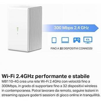 Mercusys mb110-4g router wireless ethernet banda singola (2.4 ghz) bianco