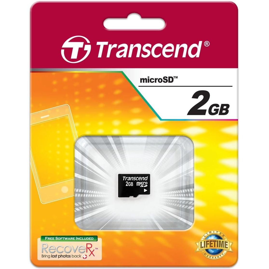 MicroSD Transcend da 2 GB in nero, classe 4 e compatibile SDXC, ideale per dispositivi di piccole dimensioni come action cam o registratori di sicur ...