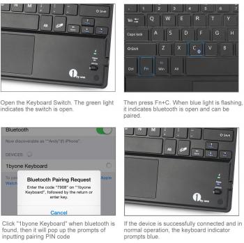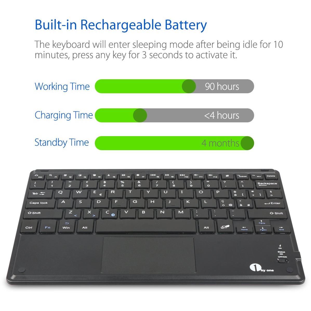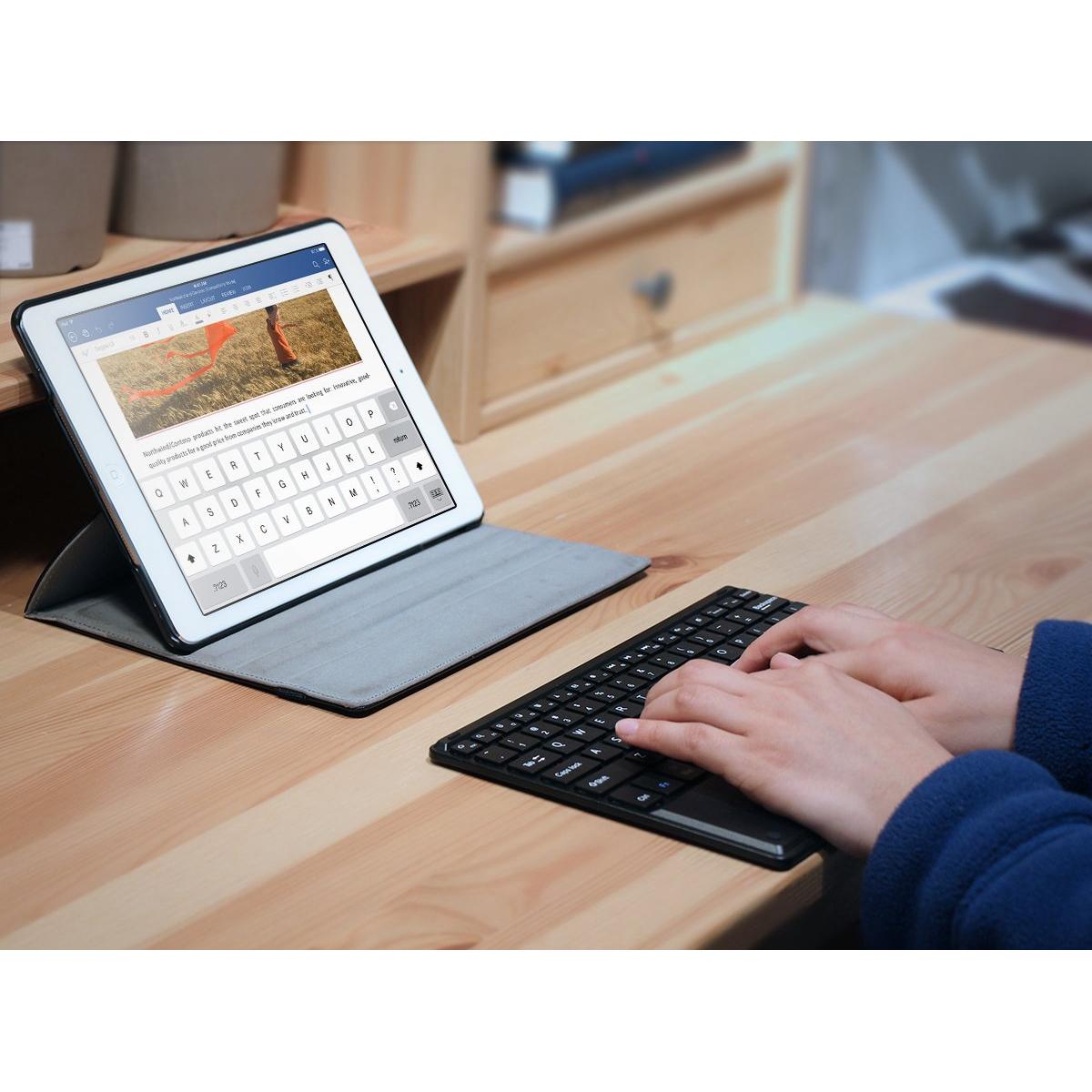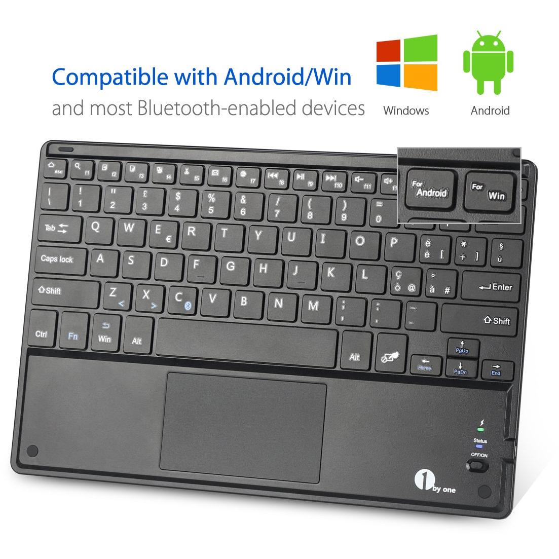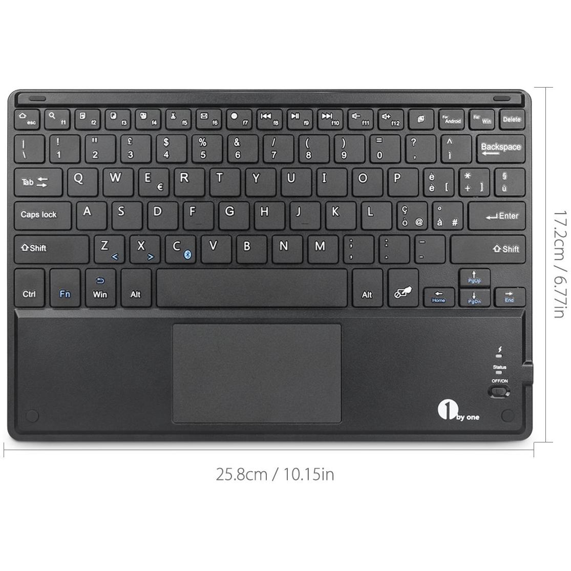 DiaField 1 BY ONE Tastiera Bluetooth Ultra Sottile con Multi Touch Integrato Touch Pad e Batteria Ricaricabile per Android, iOS e Windows, Nera