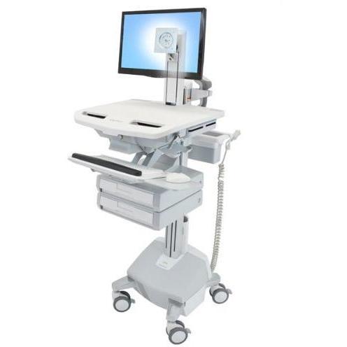 Ergotron Carrello per Display LCD/Tastiera/Mouse/CPU/Notebook/Scanner a codice a barre - Medico -, Valigia portanoteblook, Grigio, Bianco, Argento