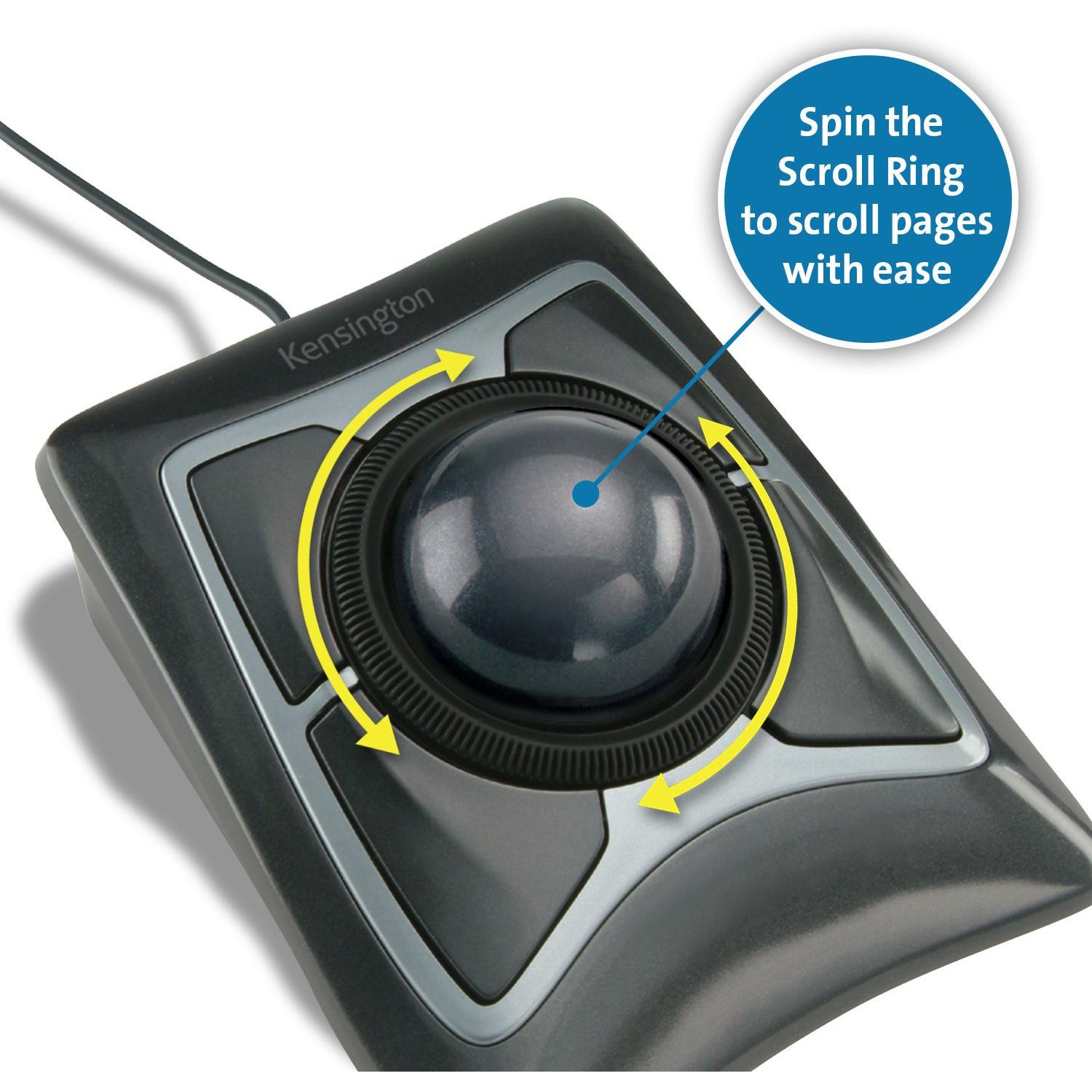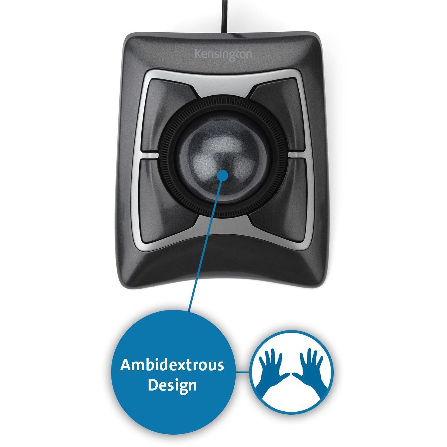 Mouse Kensington 64325 con trackball ottico di 55 mm, ergonomico per uso ambidestro e compatibile con Windows e macOS. Include quattro tasti premuti ...