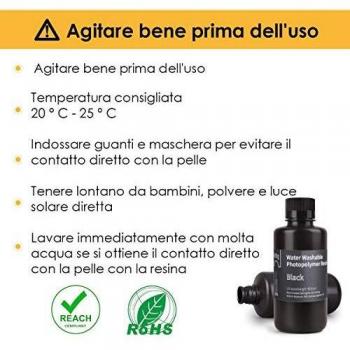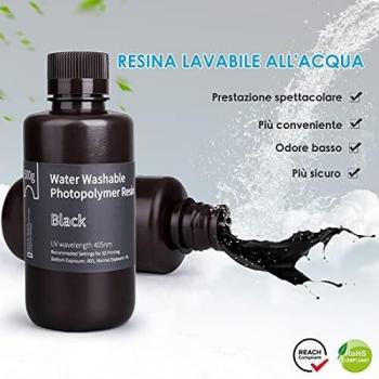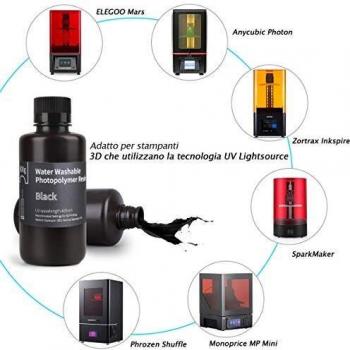 ELEGOO Stampante 3D Lavabile in Acqua Resina Rapida LCD Resina Fotopolimerizzante UV 405nm Resina Fotopolimerica per Stampa 3D LCD 500Gram Nero