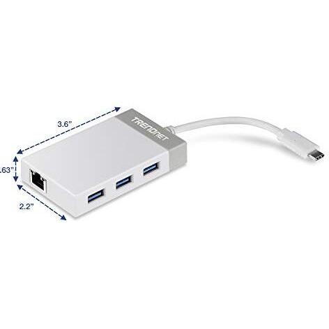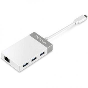 Hub USB‑C Trendnet TUC‑ETGH3 offre un connettore Ethernet Gigabit e tre porte USB 3.2 Gen 1, permettendo trasferimenti fino a 5 Gbps e conne ...