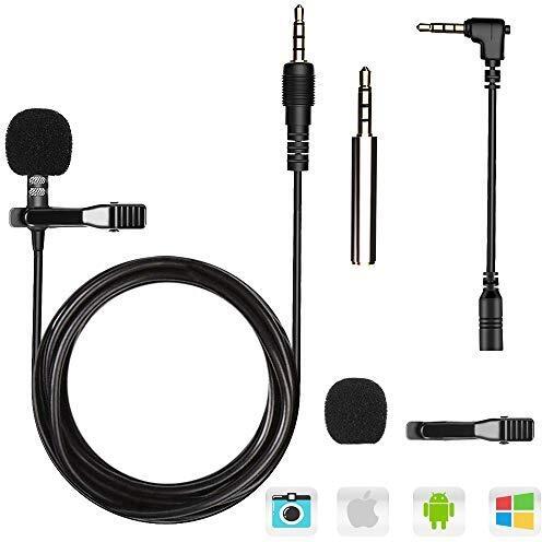 AGPTEK Z02- Mini Lavaier Microfono Clip a Condensatore Omnidirezionale 3.5mm con 2 Adattatore Esterno Microfono per Smartphone,PC,Line-in Registratore Usato per Conferenza Video/Podcast/Youtuber