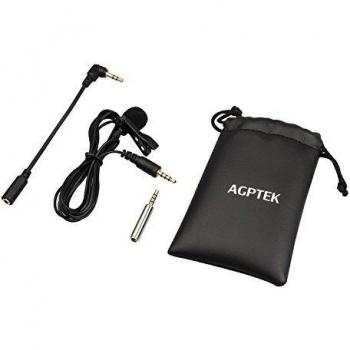 Microfono a clip AGPTEK Z02 con sensore condensatore omnidirezionale offre suono nitido in movimento. Dotato di due adattatori esterni, si collega fac ...