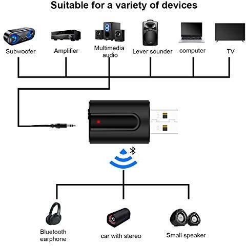 Abafia Adattatore Bluetooth USB, USB Trasmettitore Ricevitore Bluetooth 5.0 Mini 2 in 1 Adattatore con 3.5mm AUX Wireless Bluetooth Adattatore Audio per TV/PC/Telefoni/Altoparlanti/Autoradio