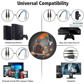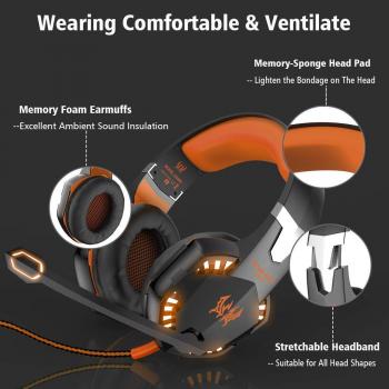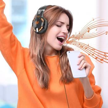 EACH G2000 Wireless Gaming Headphones with Stereo Mic and LED Light, Volume Control for PC (Arancione)