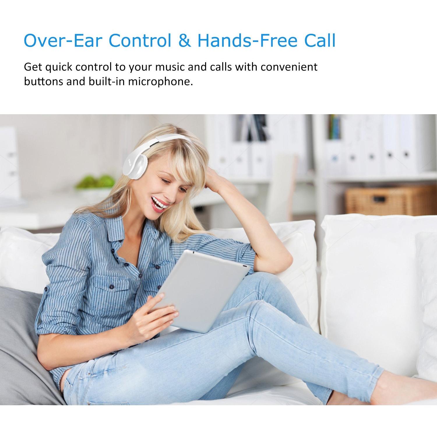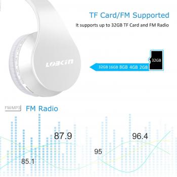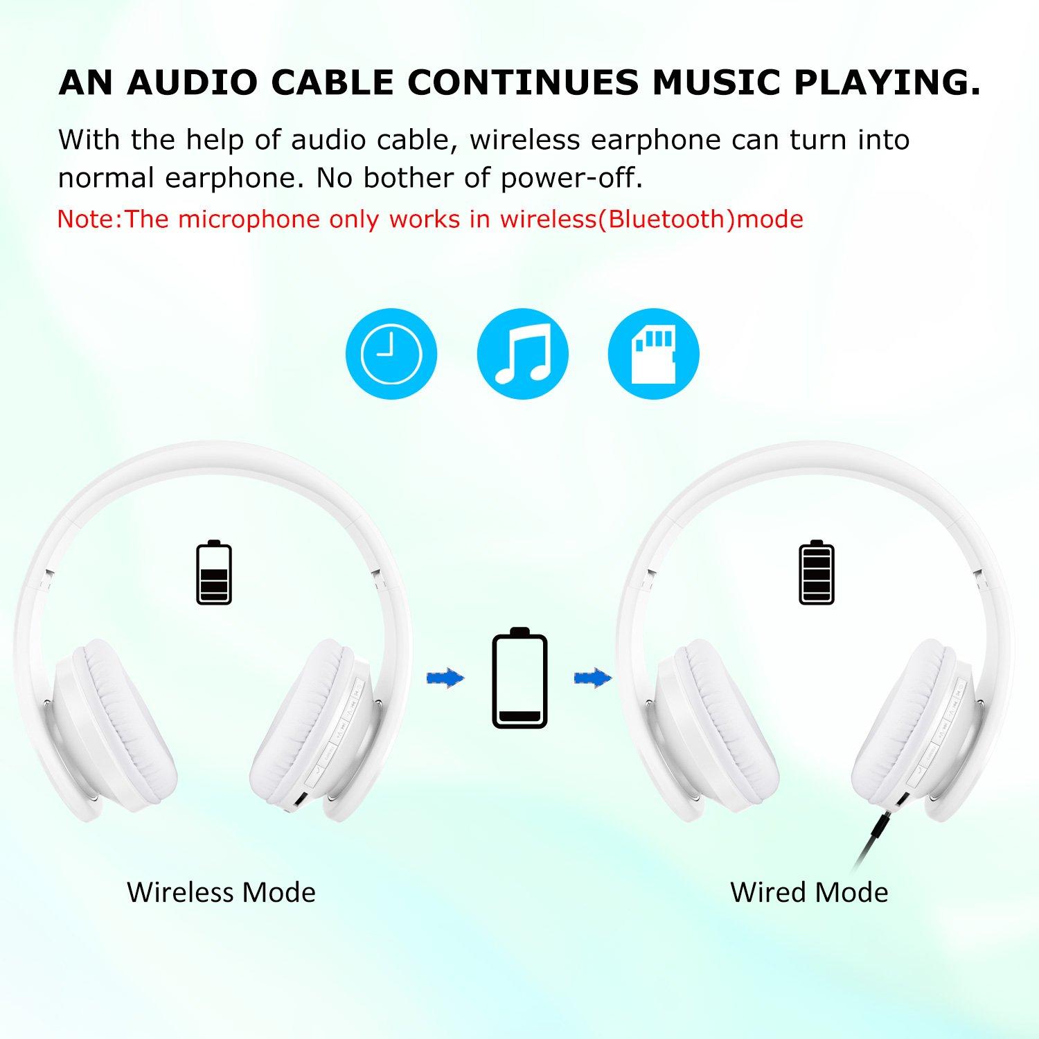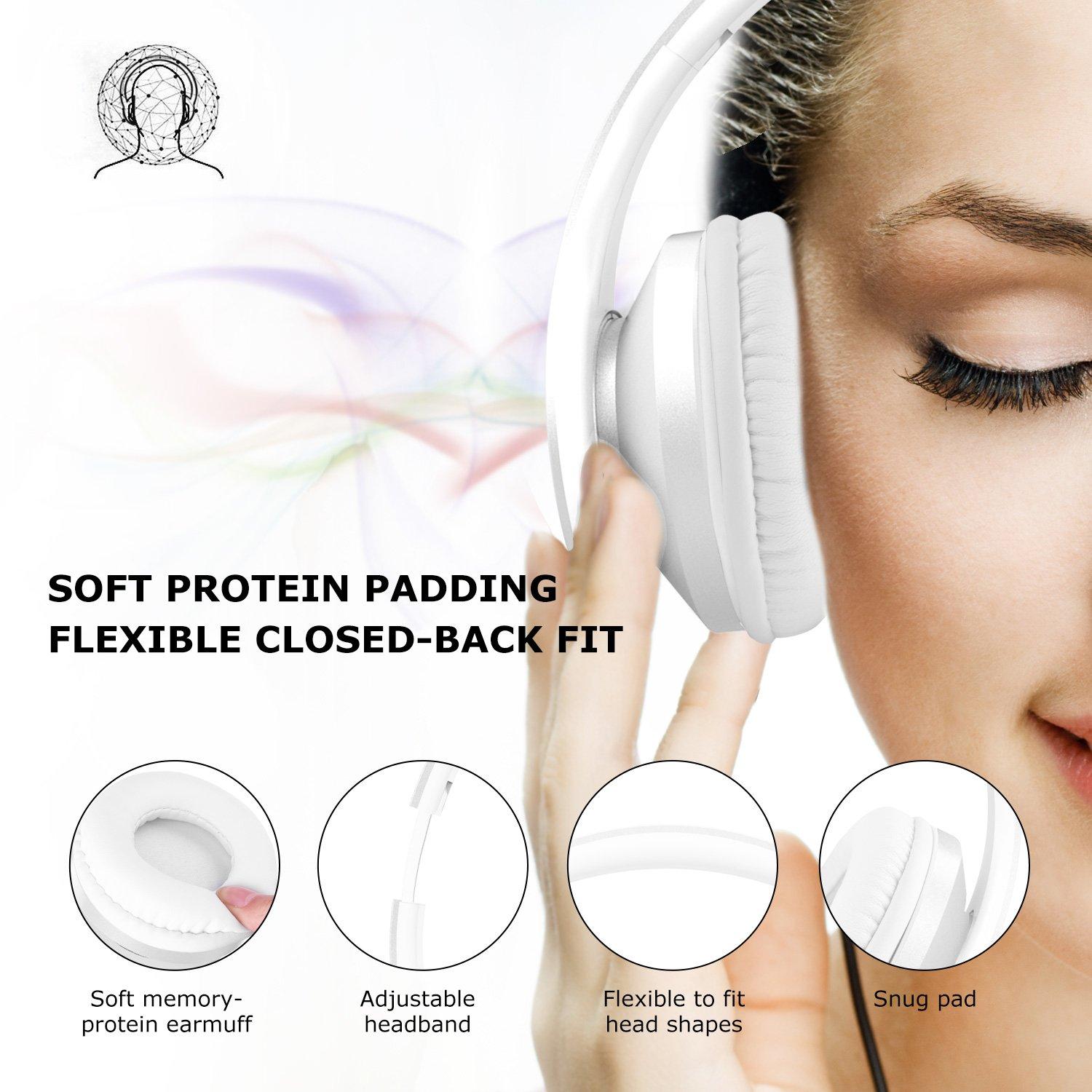 Lobkin Cuffie Wireless Stereo Over Ear con Microfono Bluetooth 4.1 e Riduzione del Rumore Interna, Pieghevoli, Bianche (Nuovo Modello)