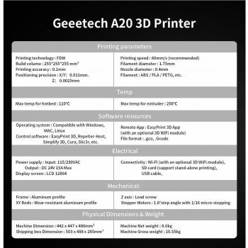 GIANTARM Geeetech A20 Stampante 3D 255mm