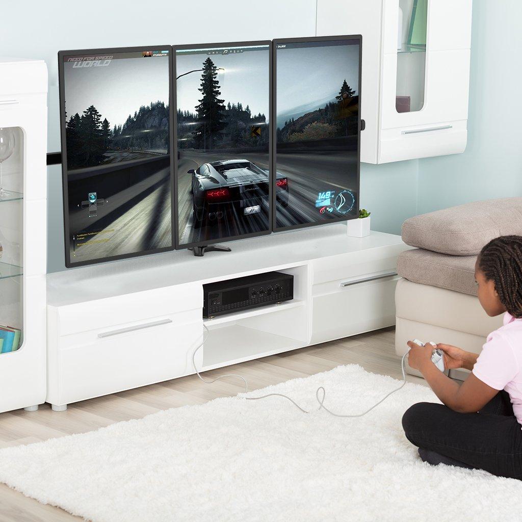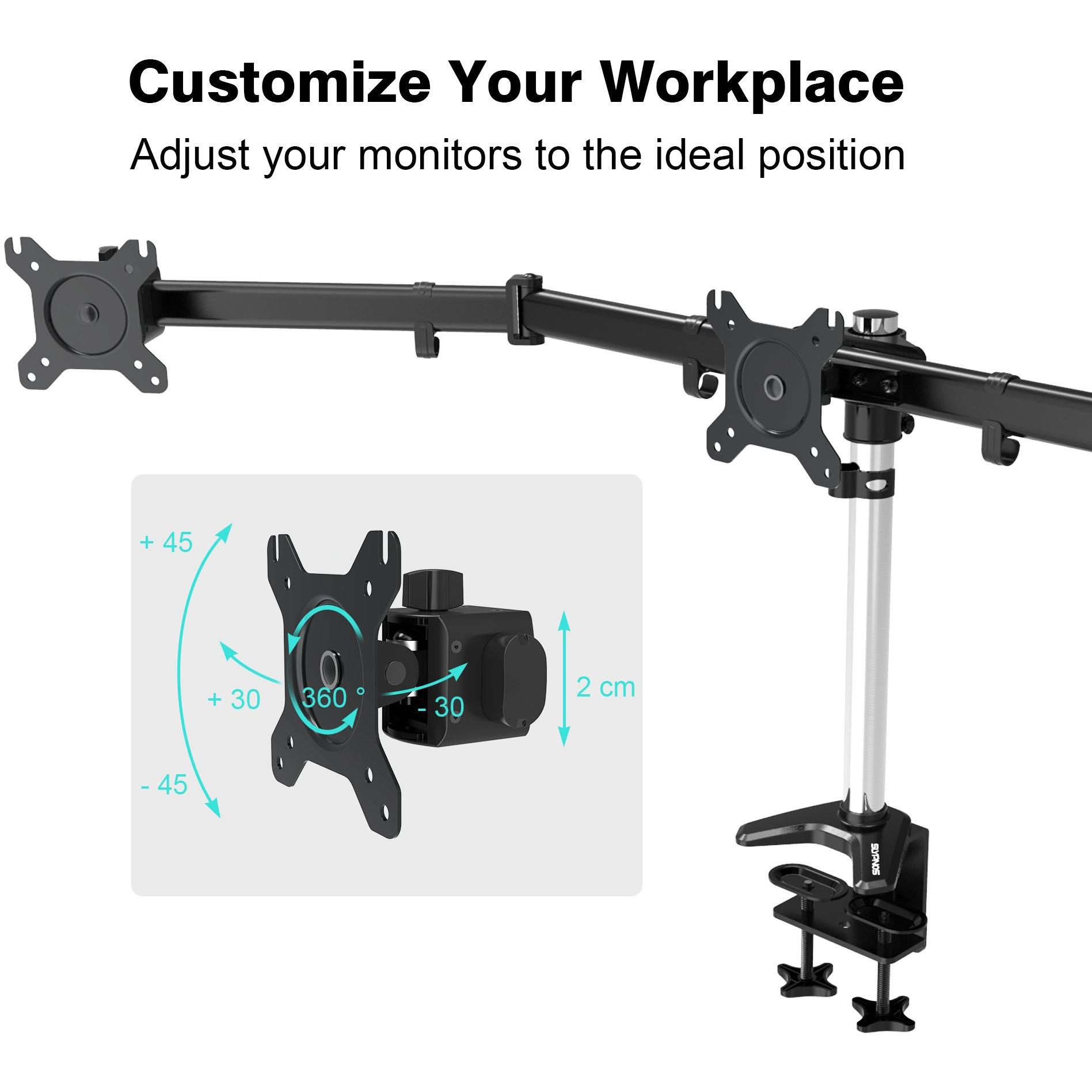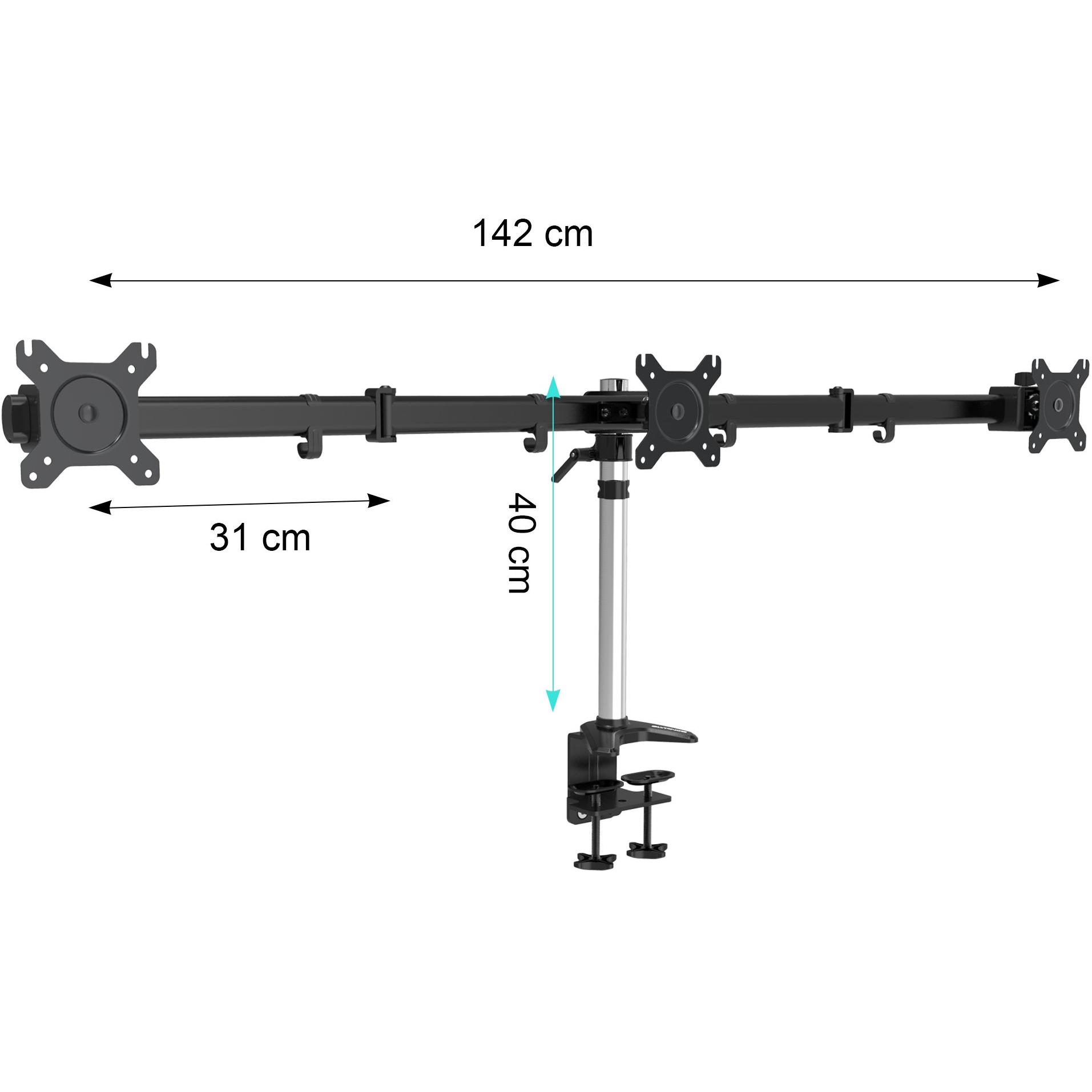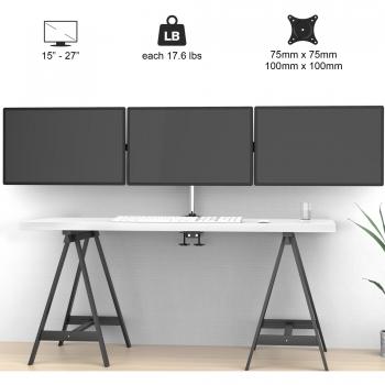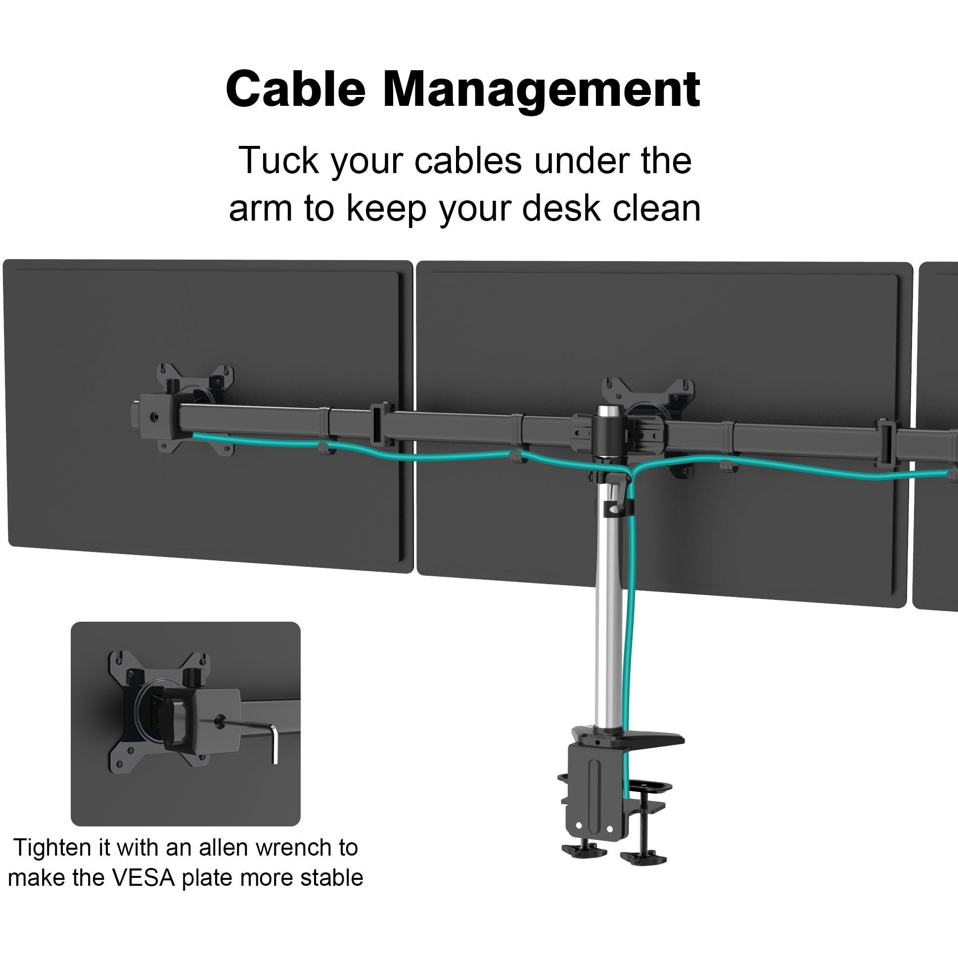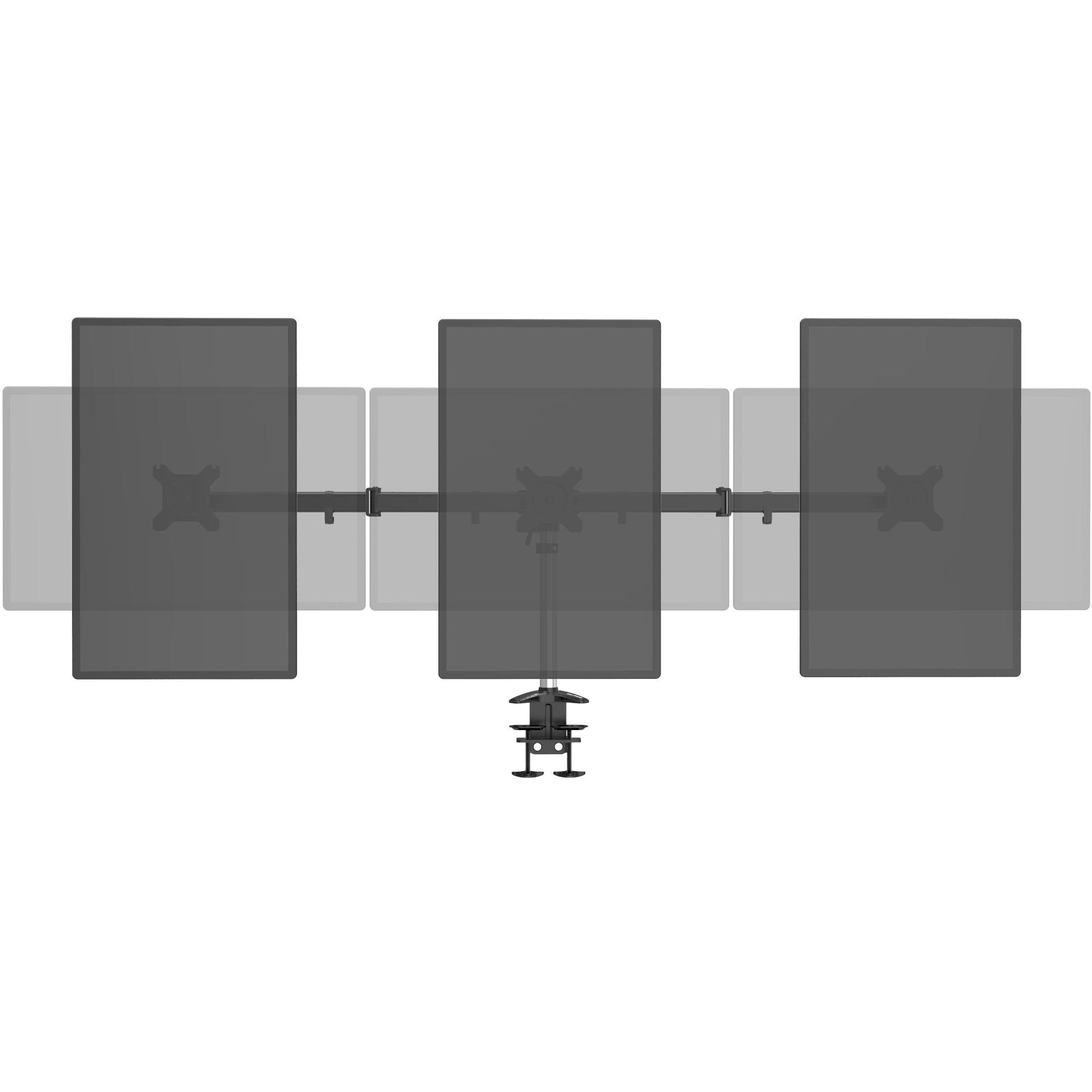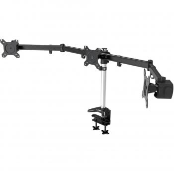 Supporto triplo in alluminio con morsetto a C e molla, adatto a schermi da 15 a 27 pollici; regola altezza, inclinazione e angolo per un ambiente di l ...