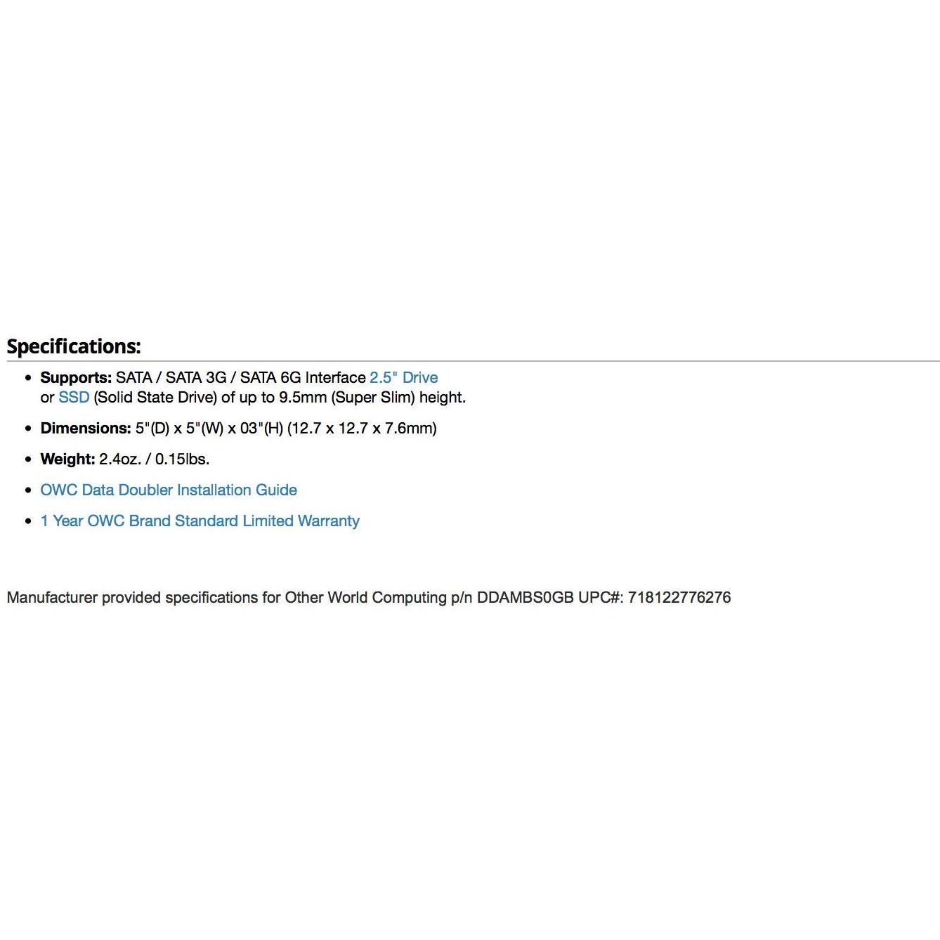 OWC Data Doubler, ottico a SATA Drive Converter soluzione staffa per MB, MBP Late 2008-2012/Current, Accessori per dischi rigidi