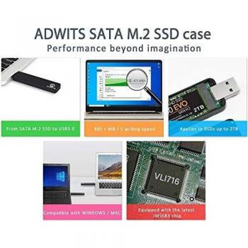 ADWITS Adapter USB 3.0 UASP a SATA M.2 (2230/2242/2260/2280) – Custodia Est. per SSD
