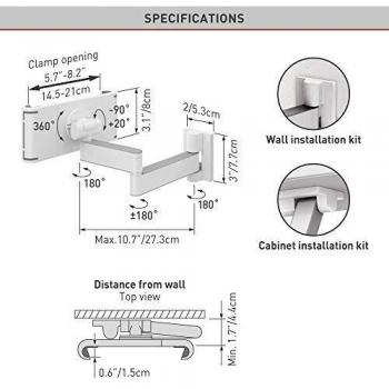 BARKAN MOUNTING SYSTEMS - 7'' - 12'' Supporto Da Parete E Mobile Full Motion Per Tablet T54 Bianco