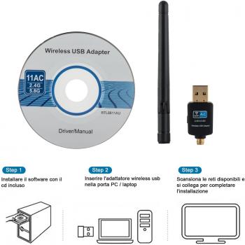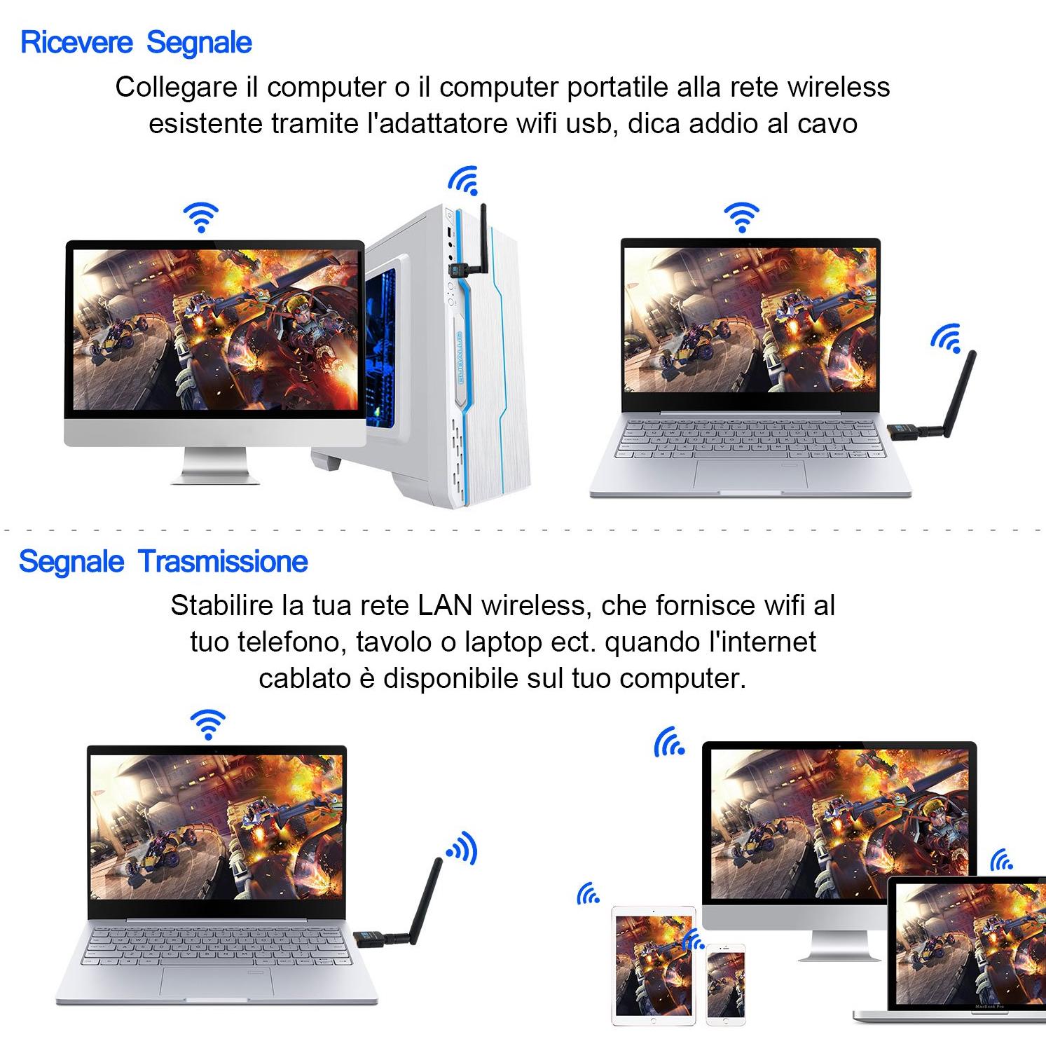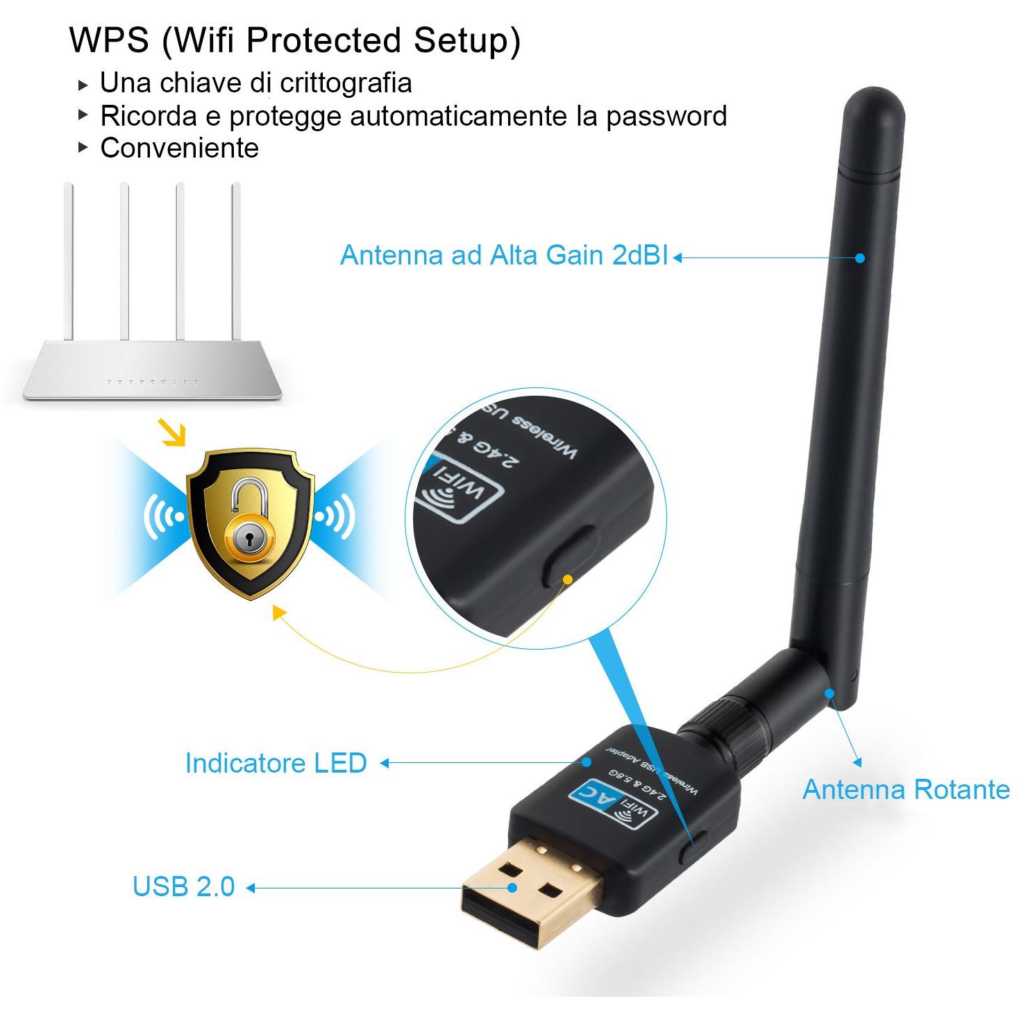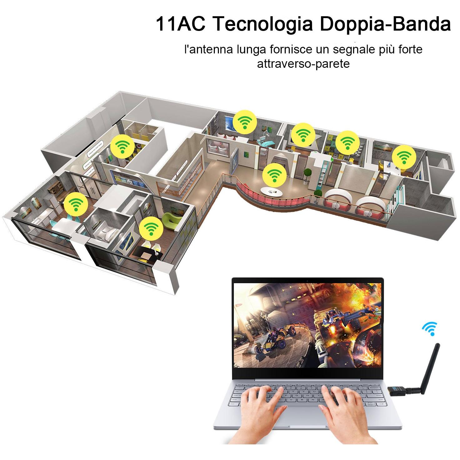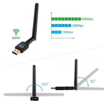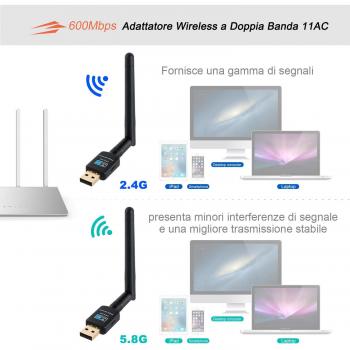 USB WiFi Adapter con Antenna 2dBi Dual Band 600Mbps