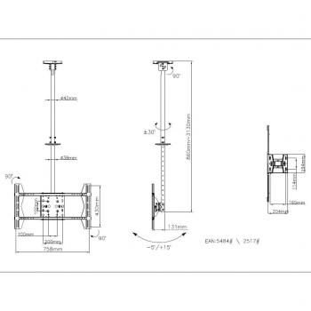 Supporto monitor soffitto Portata 80 Kg VESA 600 x 400 MULTIBRACKETS M Public Large Black 5484