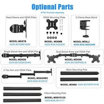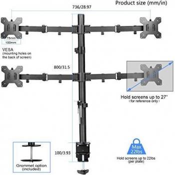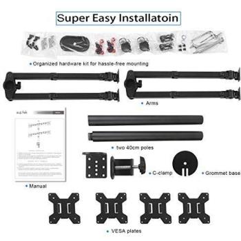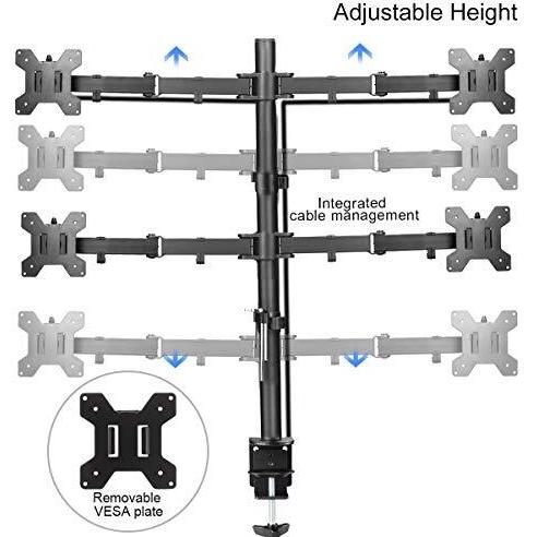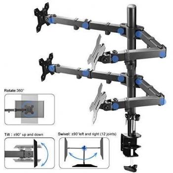 Suptek Braccio per monitor quad per schermi da 13"-27" | Rotazione girevole dell'inclinazione del morsetto per montaggio su monitor (asta 80cm) MD6884