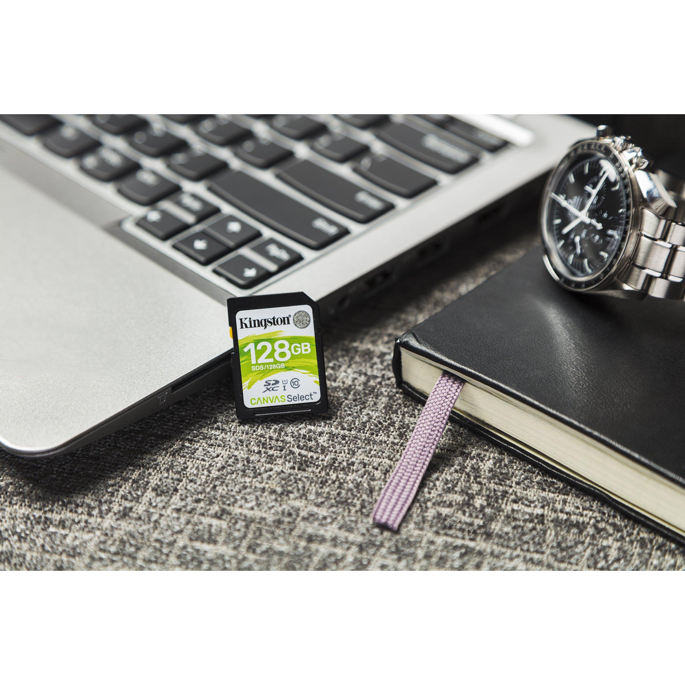 Scheda SDXC Kingston Canvas Select Plus da 128 GB, lettura rapida di 80 MB/s e scrittura a 10 MB/s, classifica UHS‑I U1/Classe 10; resistent ...