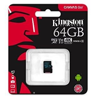 Kingston Canvas Go MicroSD da 64 GB Classe 10 UHS-I U3 con velocità fino a 90MB / s in lettura e 45MB / s in scrittura