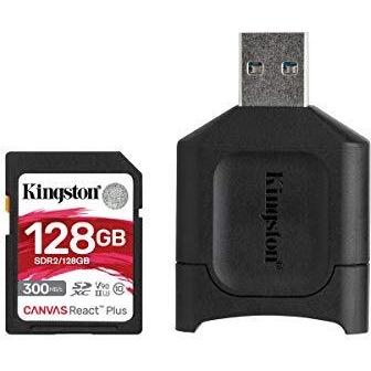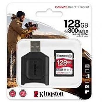 KINGSTON - Scheda SDXC Canvas React Plus 128 GB UHS-II di Classe 10 Velocità 300 MB / s in lettura + Lettore di schede incluso