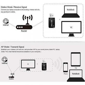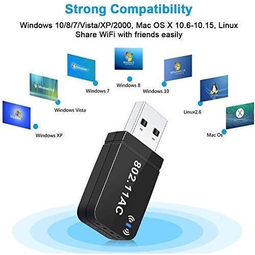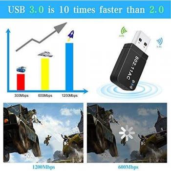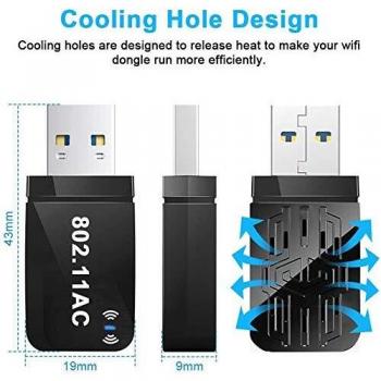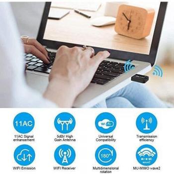 Adattatore USB WiFi 1200Mbps, chiavetta WiFi dual band da 300Mbps a 867Mbps con antenna esterna e guadagno di 2dBi
