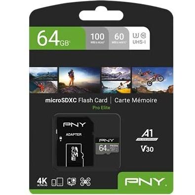 PNY Pro Elite microSDXC card 64GB Class 10 UHS-I U3 100MB/s A1 V30