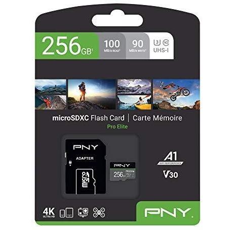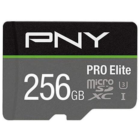 PNY Pro Elite (256 GB, microSDXC, U3, UHS-I), Scheda di memoria, Nero, Grigio