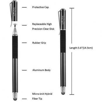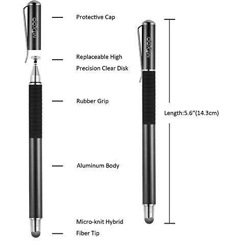 Mixoo Penna Touchscreen Capacitiva Universale 2in1 con 4 Punte Disco e 2 Punte Fibra Sostituibili Nero+Blu