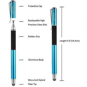 Mixoo 2 in 1 Penna Touch Pennino Tablet Penna per iPad Tablet Punta Fine Universale con 2 Punte a Disco e 1 Punta in Fibra Stilo per iPad, iPhone, Smartphone, Touchscreen e Tablet (Blu)