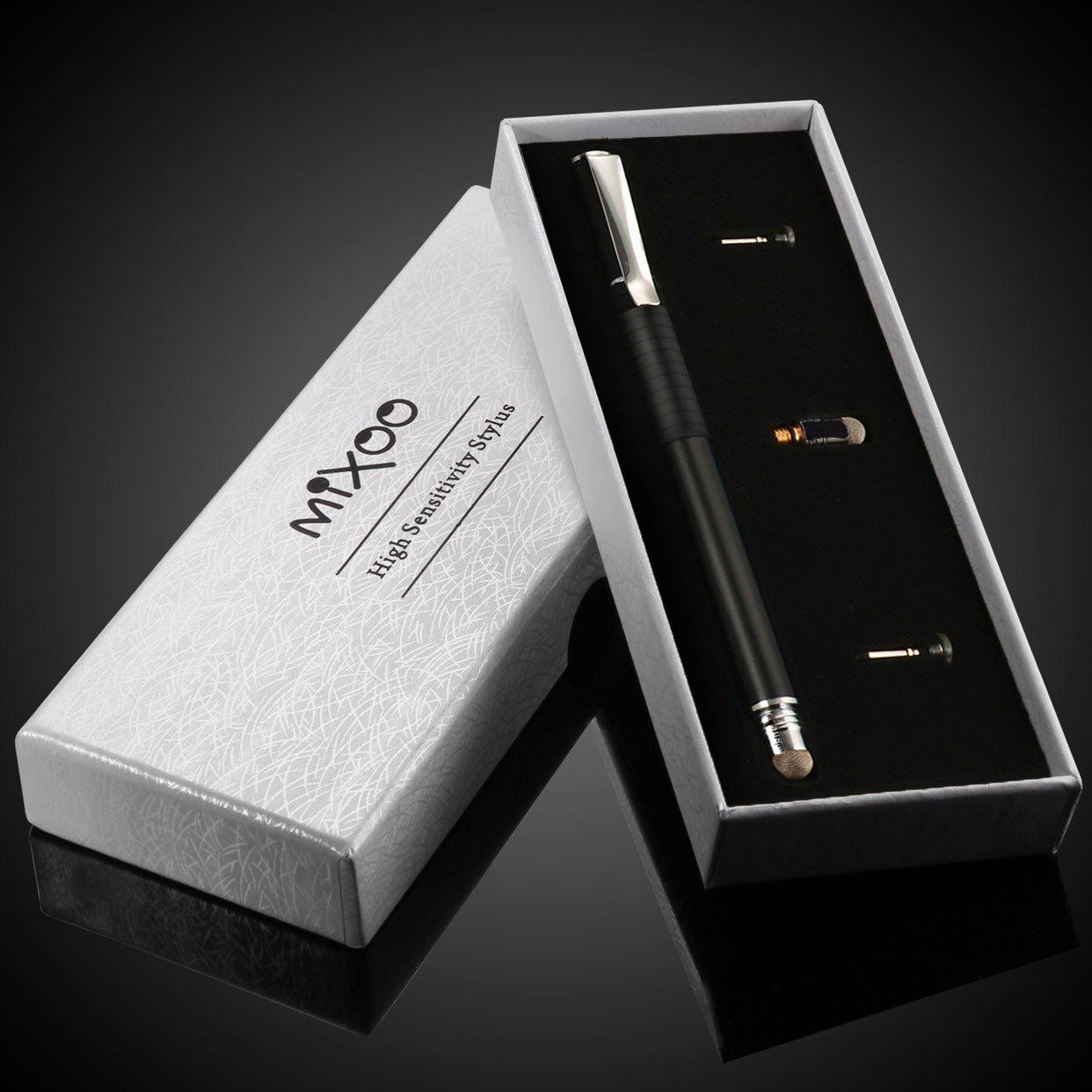 Mixoo 2 in 1 Touch Pen Tablet Pen Penna per iPad Tablet Punta Fine Universale con 2 Punte a Disco e 1 Punte in Fibra Stilo per iPad,iPhone,Smartphone,Touchscreen e Tablet (Nero)