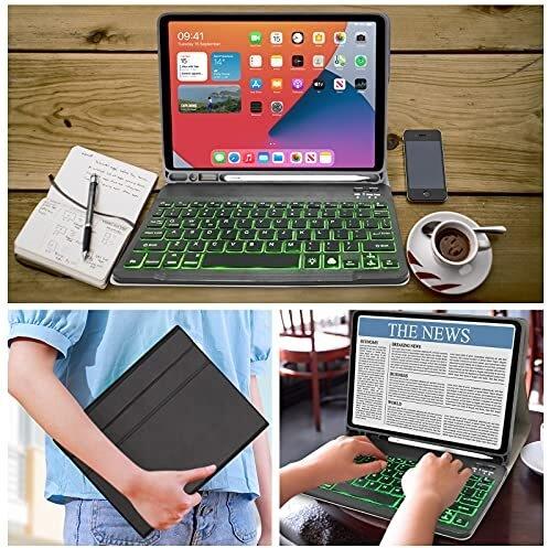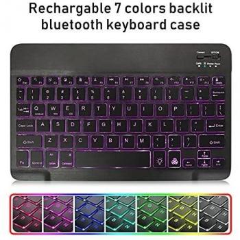 Custodia Tastiera per iPad 10,2 2021/2020/2019(9a 8a e 7a Generazione)/iPad Air 3 /iPad Pro 10,5 –Custodia con Supporto per Apple Pencil, Tastiera con 7 Colori Retroilluminati Staccabile (Nero)