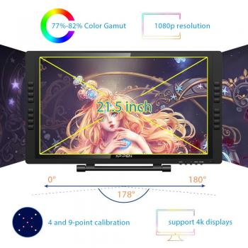 XP‑Pen Artist 22E Pro offre un display IPS HD da 21,5 pollici con risoluzione FullHD, superficie anti‑riflesso e penna ricaricabile a 8192 livelli ...