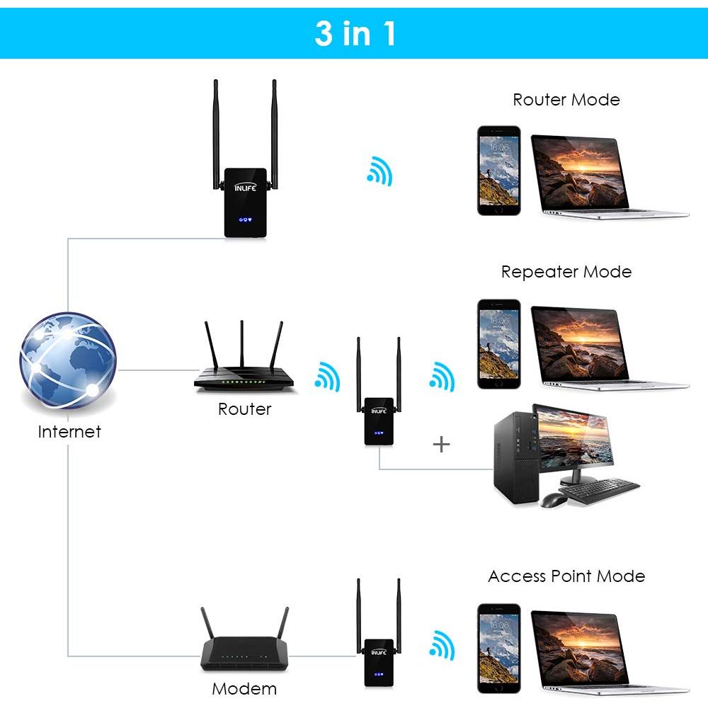 Amplifica il Wi‑Fi con InLife R1: dual band AC750 e porta Gigabit per connessioni cablate veloci. Il supporto Access Point permette di trasformarlo ...