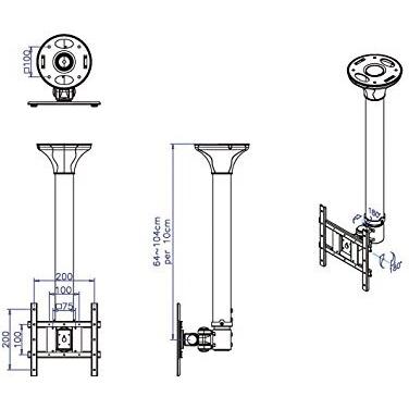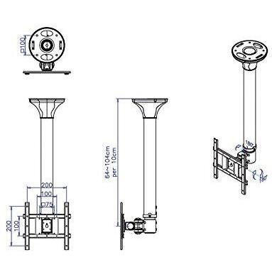 Braccio a soffitto Value che ruota fino a 360° con due articolazioni, ideale per TV o monitor fino a 20 kg. La lunghezza variabile da 65 a 104 cm ...