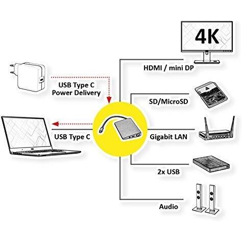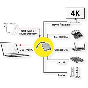 Rollink USB Type-C Docking Station with HDMI 4K, MiniDP, 2x USB 3.1 Gen 1, Audio, LAN, PD, Card Reader